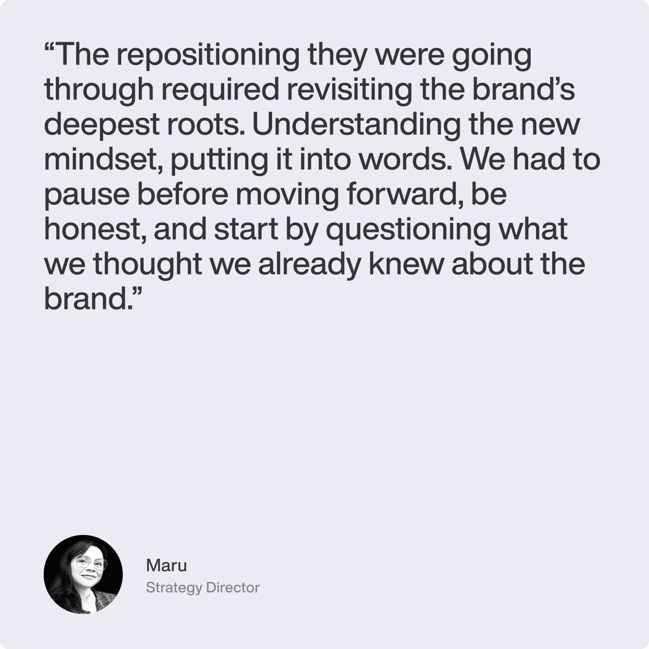 From consultant to consultant, we understood each other. The client truly valued that pause, which without a doubt impacted the entire project and both teams. We reshaped the scope, moved deadlines, and kicked off our branding strategy process with all the meetings, workshops, benchmarks, data analysis, and everything in between.